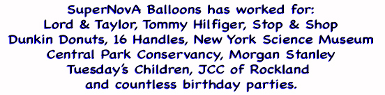 Doug showed up on time and ready to roll. He was great with the kids- and his balloons-were-AMAZING! Many people at the party remarked that they hadn't seen anyone create balloons like that before. Quite a talent and a really nice guy. I'd recommend SuperNovA to anyone. We had mostly boys at our party in our home and he occupied them (as did the balloons, particularly the bow and arrow balloons) beautifully! -Emily C, Monroe, NY